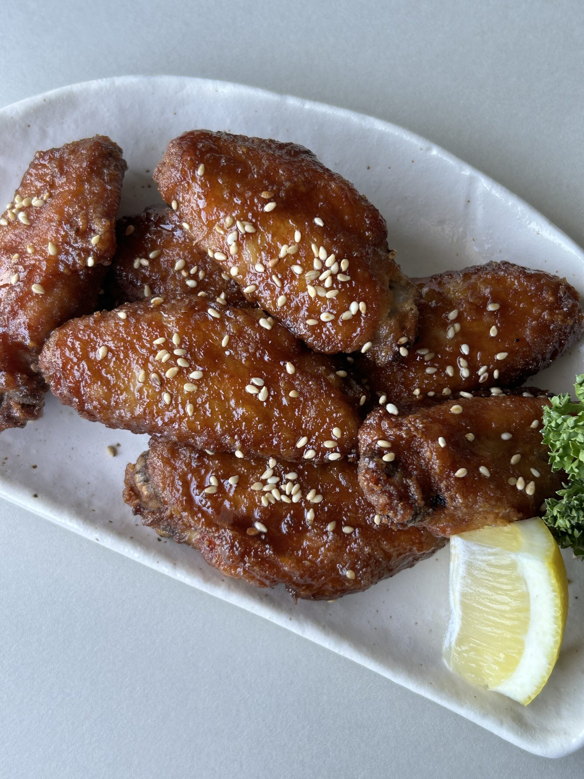 カリッと揚げた手羽中に、醤油と砂糖で作る特製の「甘辛だれ」を絡めました。 手羽中が油に入った瞬間のパチパチという心地よい音、そしてタレが煮詰まるにつれてキッチンに広がる醤油と砂糖の香ばしい香りを想像してみてください。