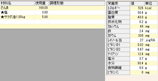 | さんま | 2尾 (約240g) | 可食部は約70% |