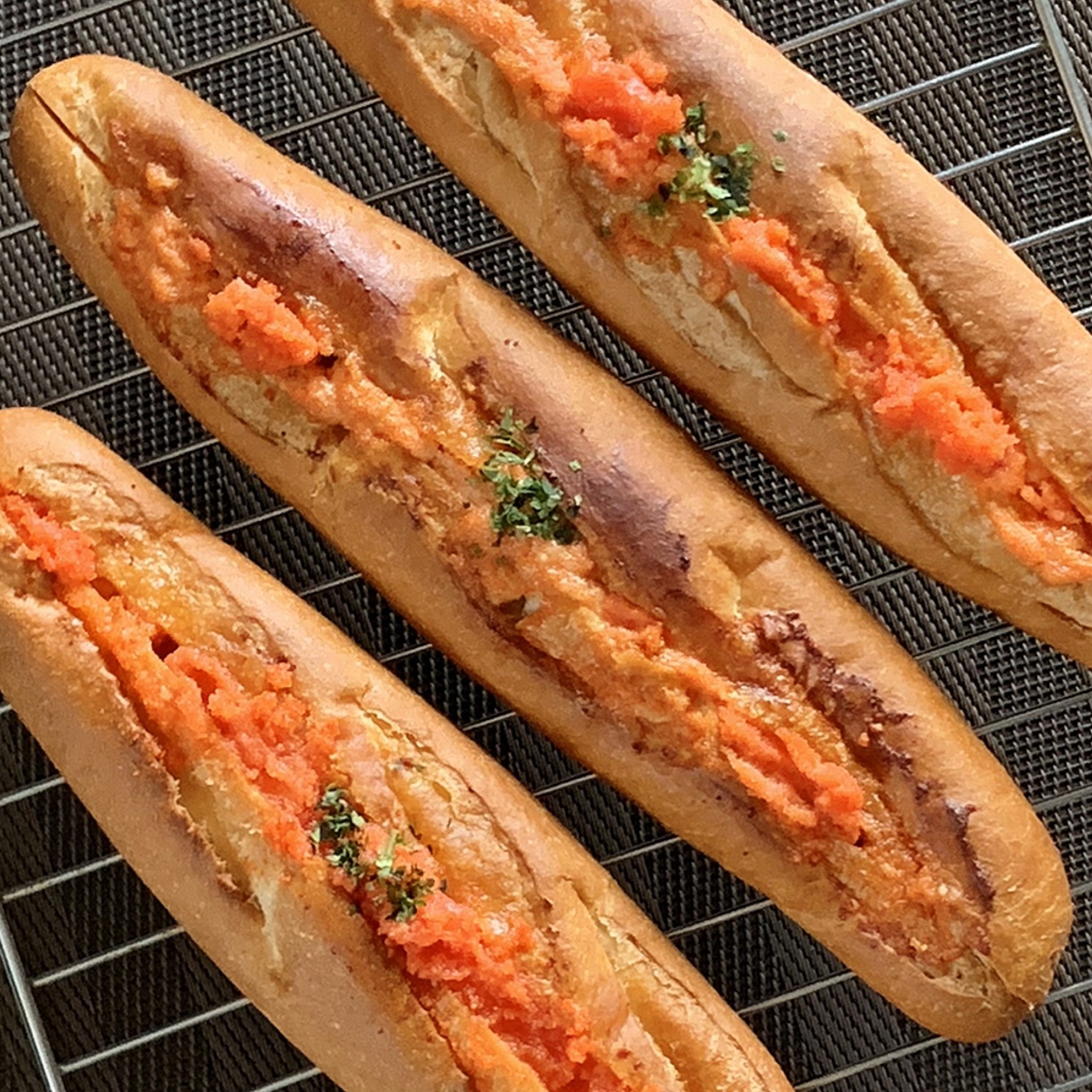 明太バゲット 👆写真の手前にあるものはマヨネーズを入れていません。作ってみましたが、マヨネーズなしでも美味しかったです。