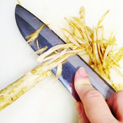 - 皮を剥きすぎない: ごぼうの香りは皮の周りに一番含まれています。包丁の背で表面の泥を軽くこそげ落とす程度にし、黒い皮が少し残るくらいがベストです。