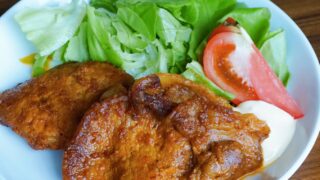 main dish Pork Steak Marinated In Curry Mayonnaise Thinly sliced pork loin is marinated in a sauce made with curry, mayonnaise, and ketchup, then grilled in a frying pan. 2025.09.28 main dish