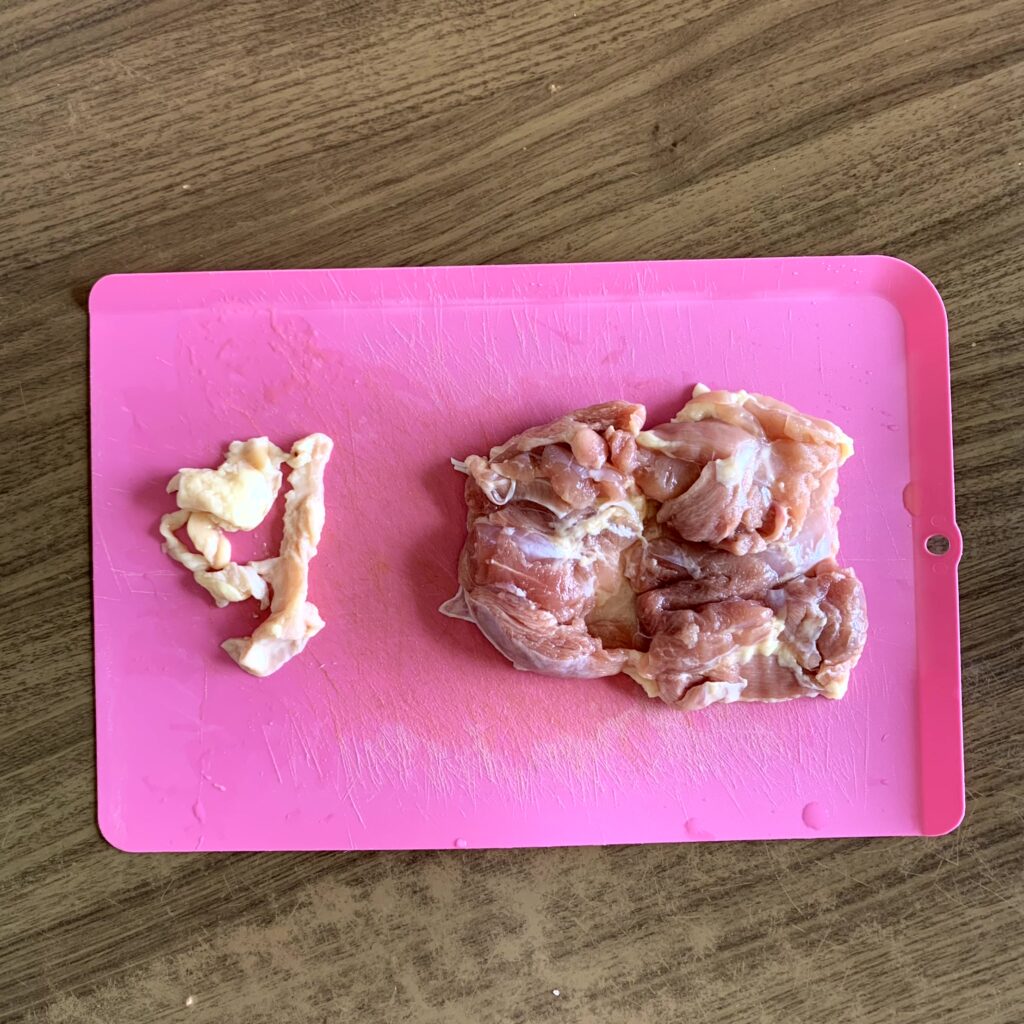 - Remove excess fat from the chicken thighs, rub in salt and pepper, and leave for 20 minutes.