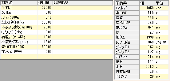 Fricassee only Nutritional value when using 600g of chicken wings (edible portion 270g)