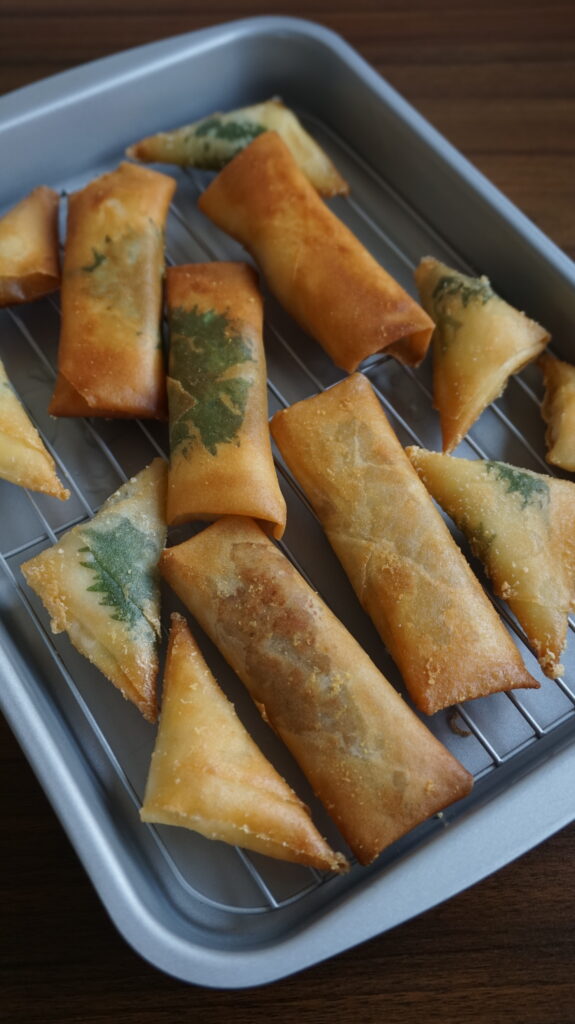 Crispy Triangle Spring Rolls with Chicken, Shiso & Melty Cheese | Perfect Party Snack