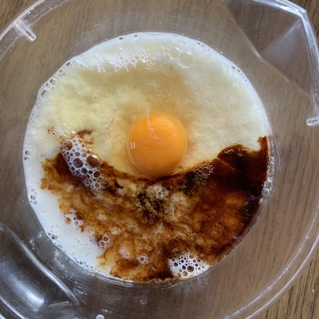 - Mix the Base: In a bowl, whisk the egg and combine it with the soy sauce, mirin, and dashi granules.