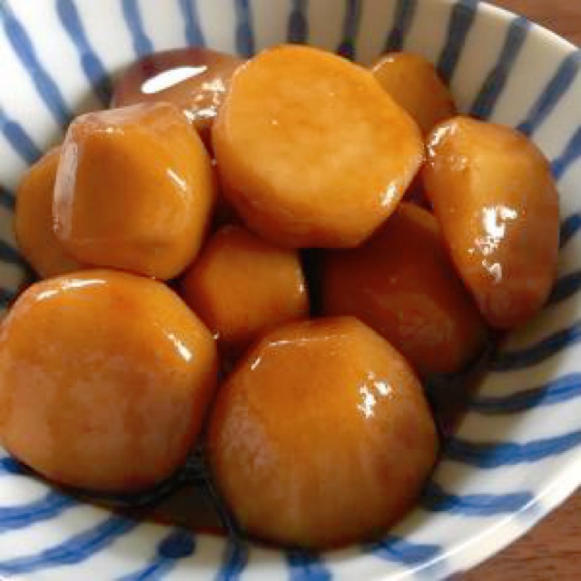 It’s made by simmering taro in a mixture of soy sauce, sugar, and mirin.