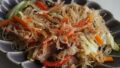 Yaki bifun is a flavorful stir-fry made with rice noodles, pork, and a variety of crunchy vegetables.