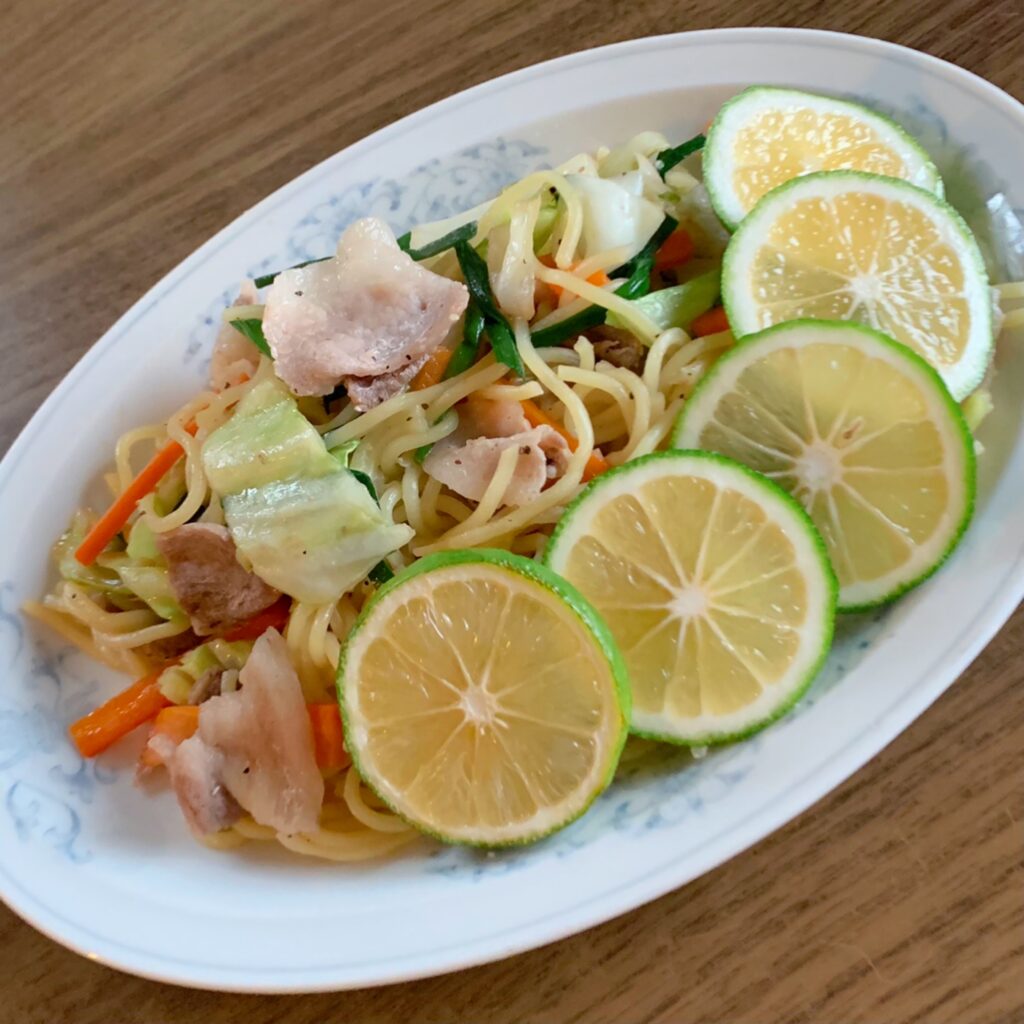 The key to my shio yakisoba recipe is to squeeze in plenty of kabosu (citrus fruit). If kabosu is unavailable, I use lemon.